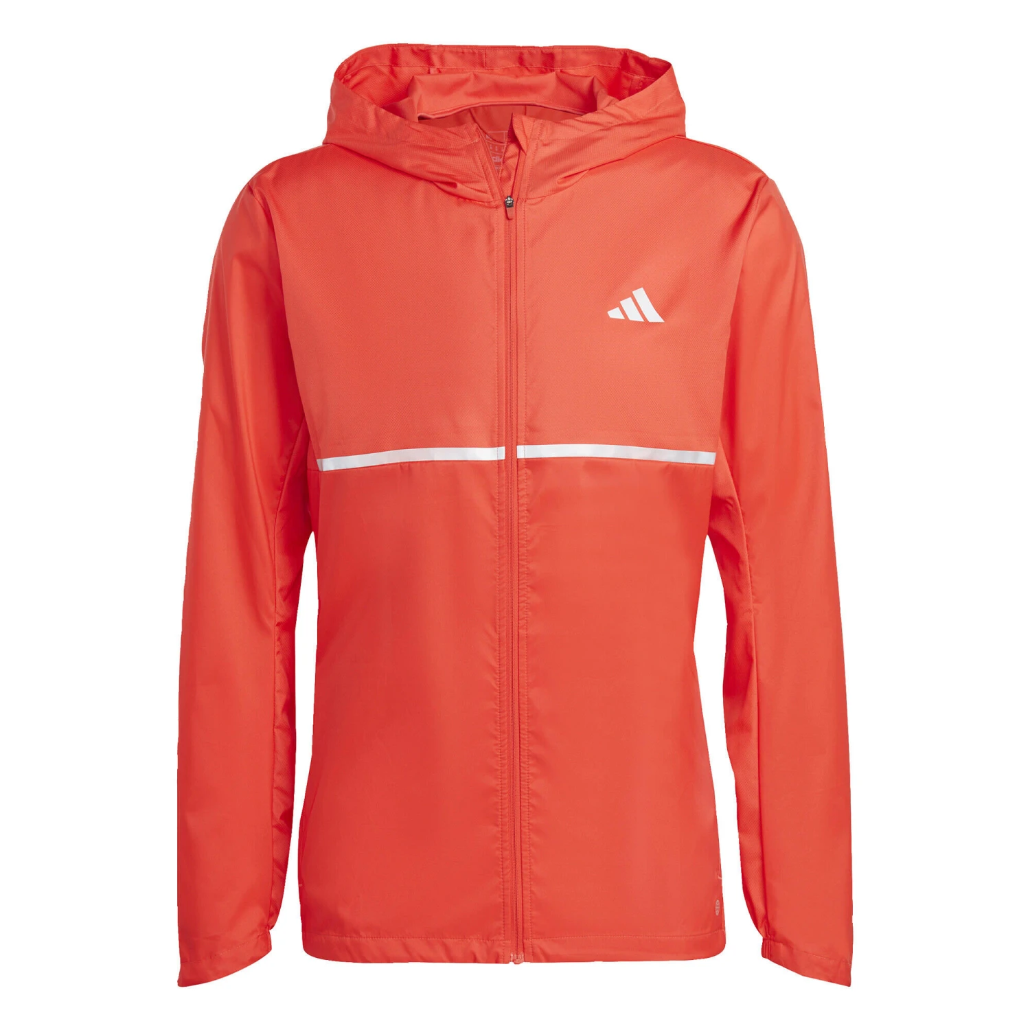 Zip into this adidas running jacket and log those cool morning miles. Lightweight, breathable dobby fabric is comfortable for everyday wear. Zip pockets keep your essentials close at hand. When there’s a chill in the air, this hooded jacket will keep you going.Made with 100% recycled materials, this product represents just one of adidas’ solutions to help end plastic waste.