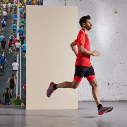 Running jacket made with recycled materials.