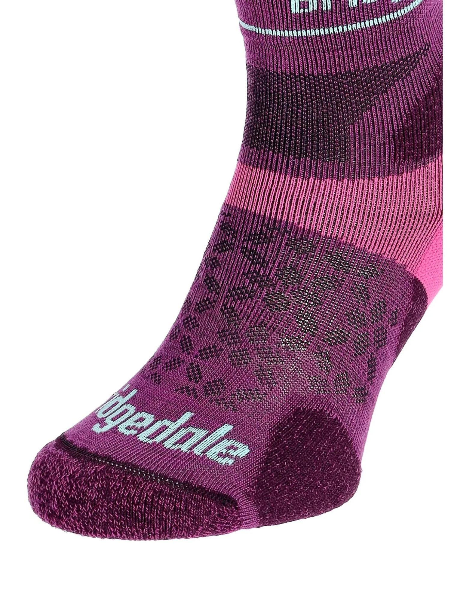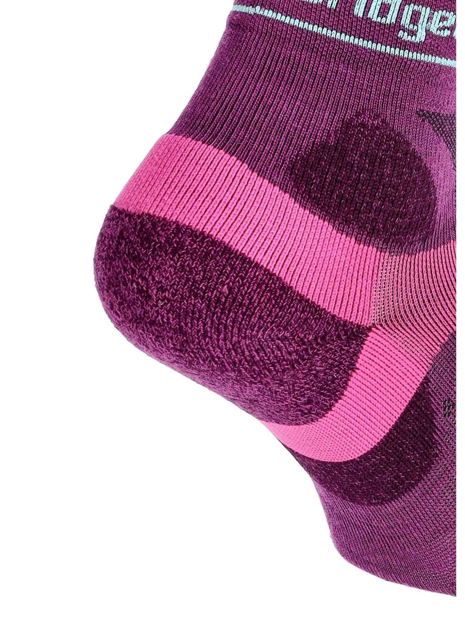 Women’s specific fit sock for serious runners who like to explore the worlds trails at a faster pace. The Trail Run Ultralight Merino Sport has T2 targeted micro cushioning combined with extra ventilation for the perfect balance of protection and comfort on the toughest terrain. Merino Sport Fusion Technology provides resilient padding, moisture wicking, odour control and outstanding durability on the trails. The Sport Fit gives supportive compression for stability and balance around the ankle and mid foot and the zero debris cuff gives an extended close fit to prevent debris getting in and this means your sock won’t slip down or bunch in your footwear. The natural toe box is wide and un-restrictive, allowing your toes to splay when running and the reinforced seam prevents splits and blow outs when descending. Built on a structure of LYCRA® and set by our Thermo Fit process ensuring the sock returns to its original shape and size after every wash. These socks deliver fantastic comfort for running whether on or off the trails.