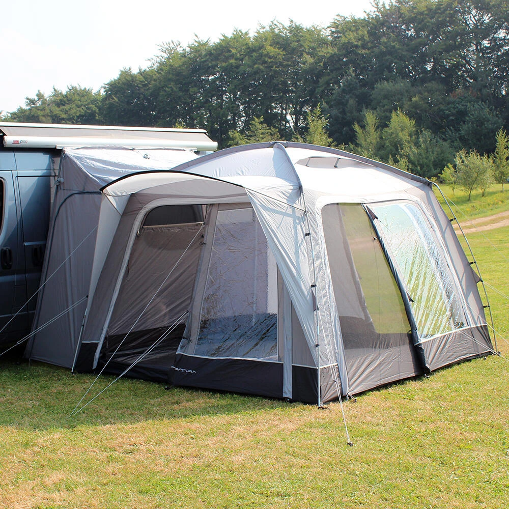 This lightweight pole and sleeve drive-away awning remains the most popular, upper entry-level small family weekender on the market. With just two fibreglass poles used to create the main body of the awning it is quick and easy to pitch, and structurally very stable. The unique design means this is one of the most versatile driveaways on the market, offering access from all sides of the awning through the large roll back doors. Has the option to zip a Cayman Bedroom Annex to the back of the awning, meaning your main living space is not affected if you are looking to add sleeping space. Available in Three ergonomic cowl heights to suit the vast majority of campervans & motorhomes, the Cayman F/G offers unrivalled value for money. Including a ‘fold-flat’ sewn-in groundsheet, and lots of ventilation with plenty of mesh fly screen panels, this is the awning of choice for smaller touring families, couples or independent adventurers, who crave more usable space alongside their van, to meet a budget. Fixing Height 180cm – 220cm (Low). • 120HDE high density all-weather lightweight fabric