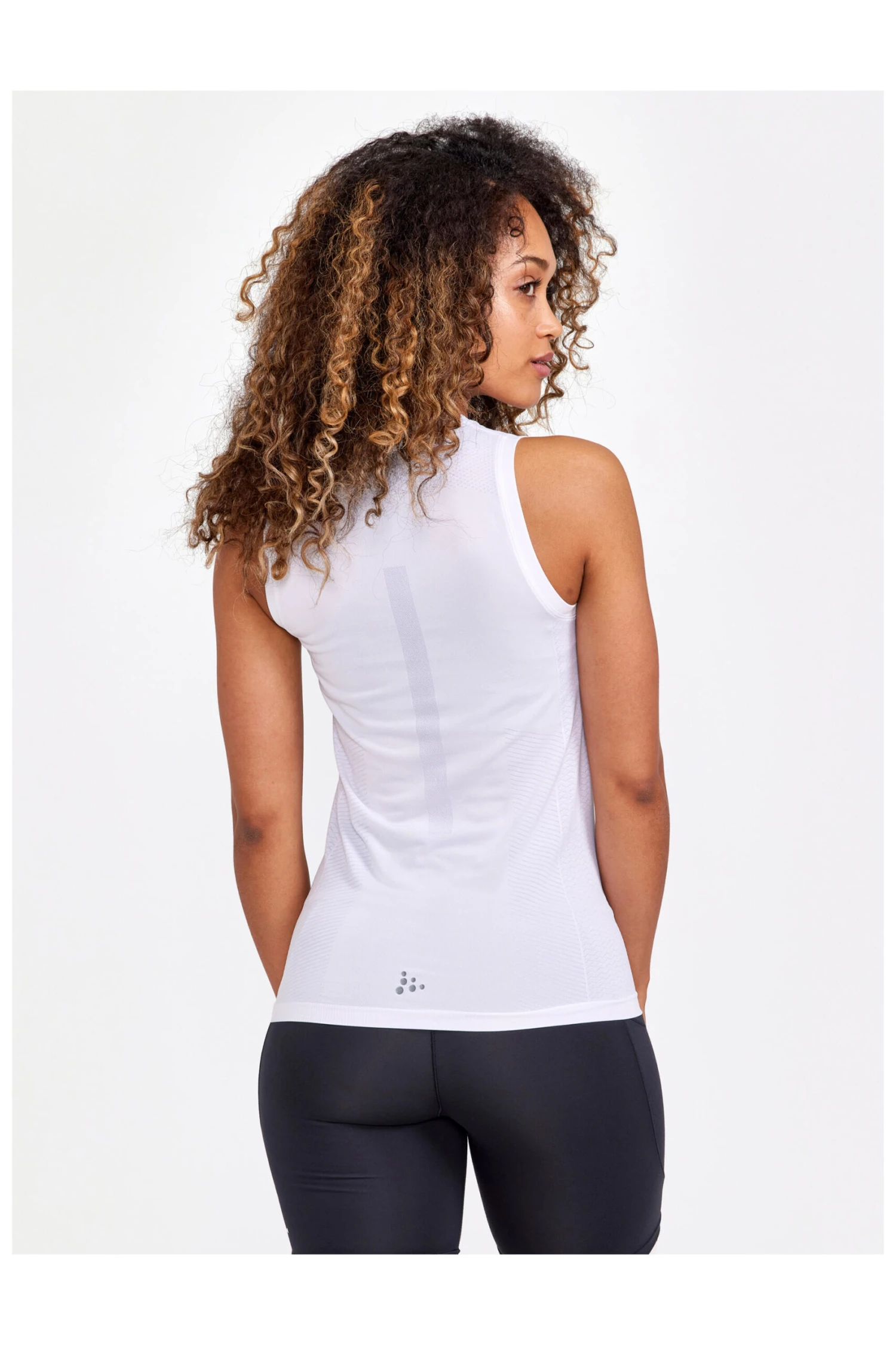 The tee is made of recycled, highly functional polyester and features a seamless construction with bodymapped structure for enhanced ventilation in hot spots. Perfect to wear on its own during workouts on hot summer days.