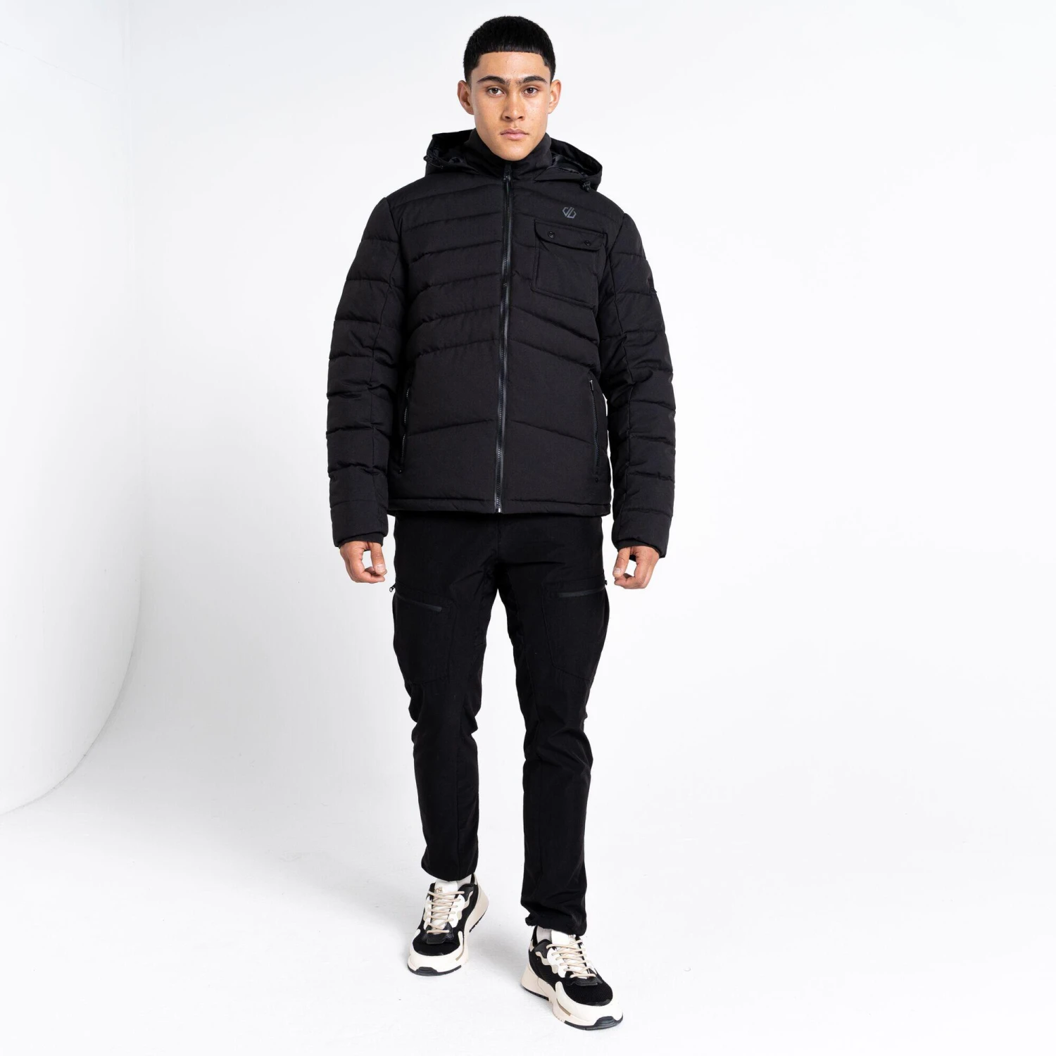 The Endless III Jacket. Recycled waterproof and breathable fabric protects you from rain and snowfall but keeps moisture at bay. With four-way stretch for full mountain mobility. Baffle lined with knitted rib to collar and cuffs seal in the warmth. Featuring a storm flap and hood with high collar and snap fastening for optimal protection. Wear for mountain or town. This product recycled 22 plastic bottles.