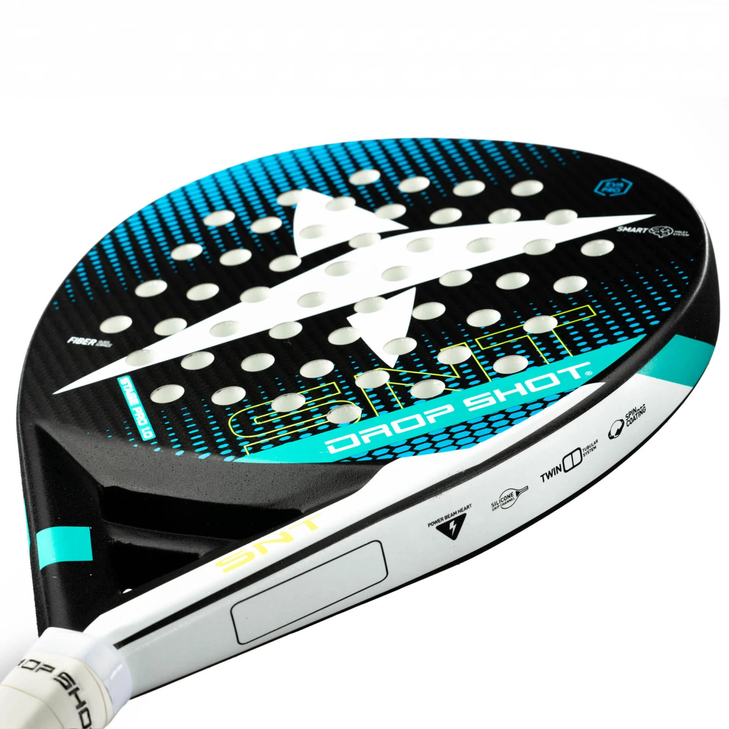 The DropShot Stage Pro was designed for intermediate players looking for an all-round racket that will take their offensive game up a notch.The teardrop-shaped head, high balance point and moderate weight (360-385 g) strike an excellent balance of power and handling. The fibreglass and Eva Pro core enhance the comfort.