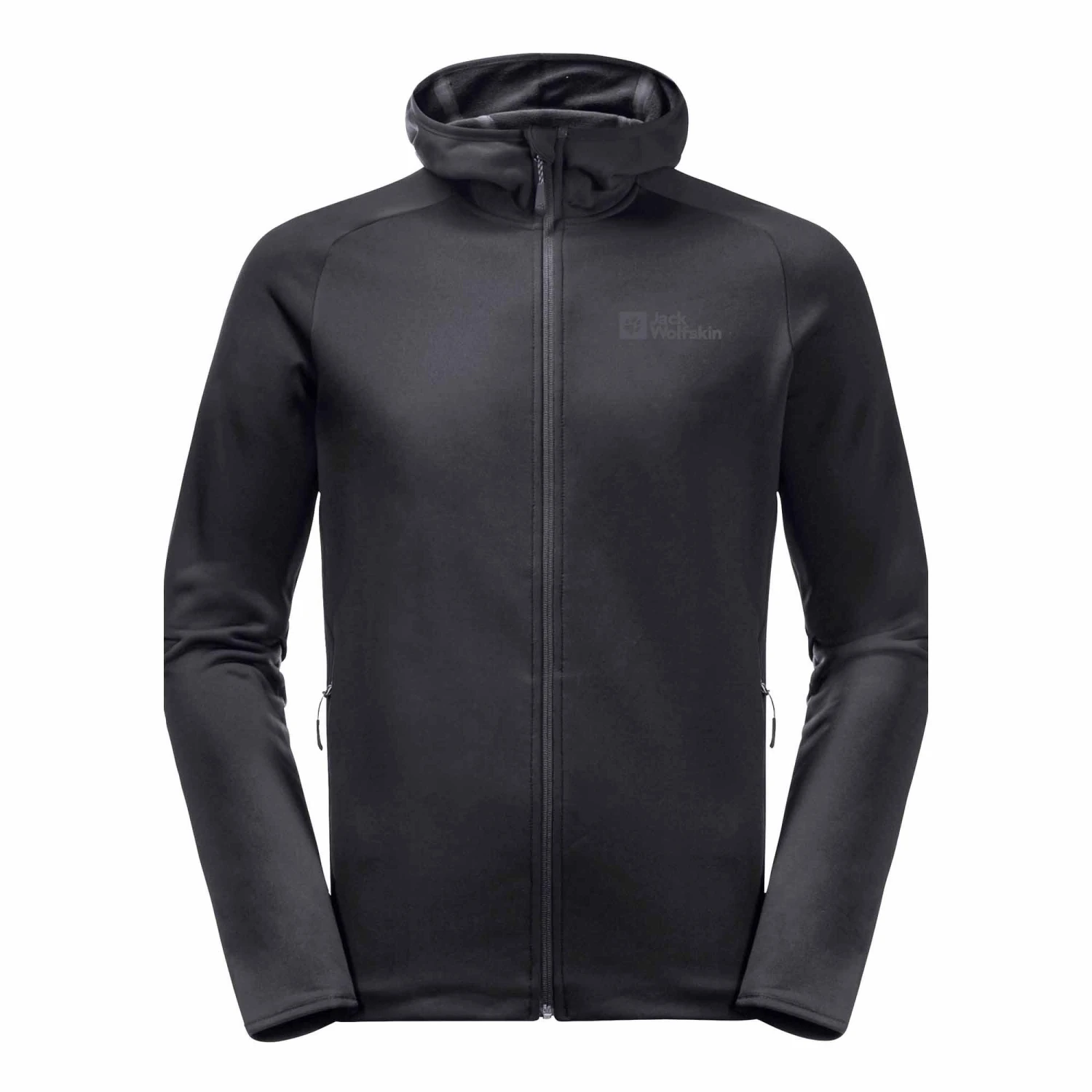 Made of a power stretch fleece, this jacket has a soft, brushed reverse side and a smooth exterior. The stretchy fabric ensures a high level of comfort and maximum freedom of movement. The hood is used to protect the head and neck on colder days. Two side pockets to store belongings. Full zip for coverage. Jack wolfskin logo to chest.