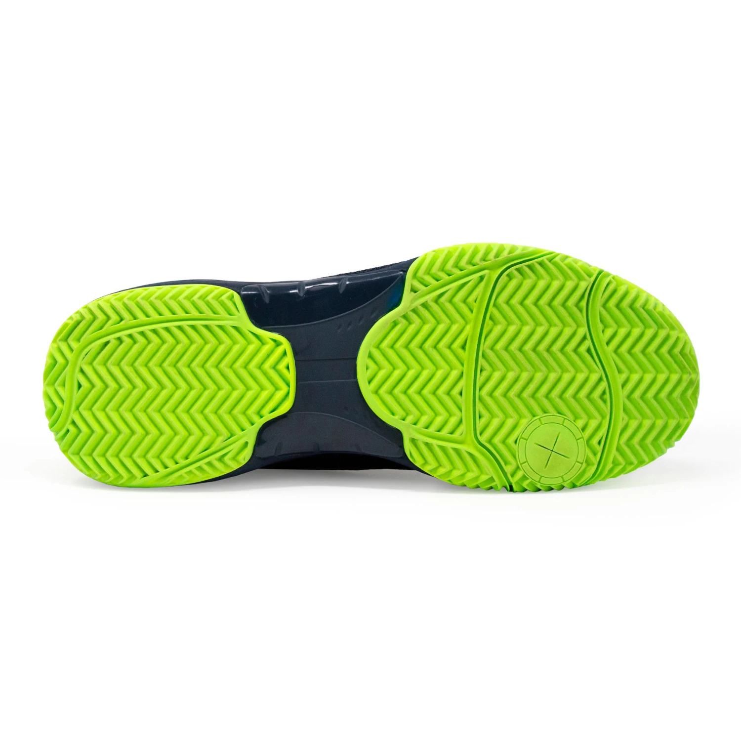 Padel is played on sand-filled artificial grass. This makes the court very slippery. Padel shoes have a sole with a specific shape so that players of all levels have the grip they need. They also provide lateral stability, foot support, and cushioning as they absorb impacts.