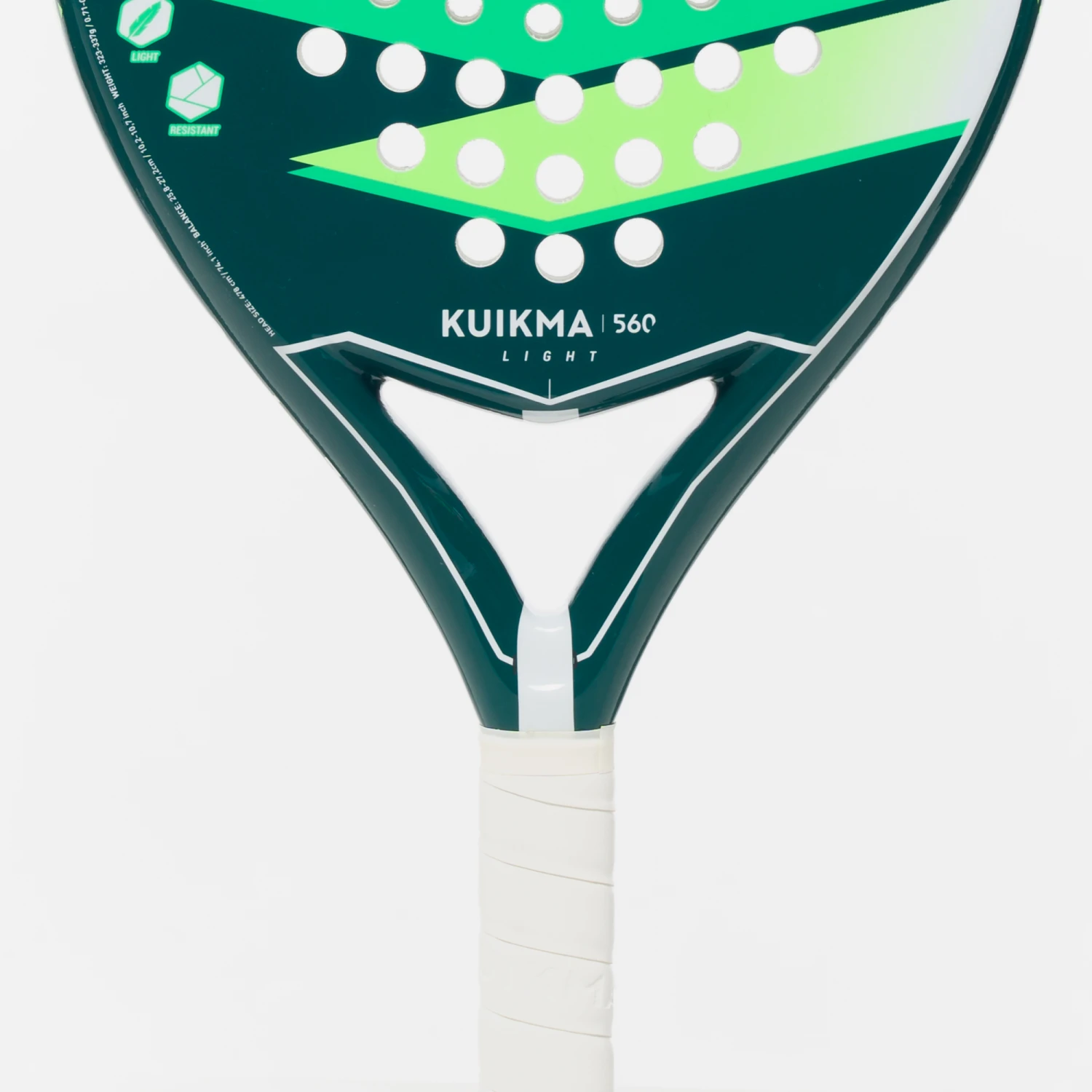 The Kuikma PR 560 Light is ideal for young players (over age 9) looking for a versatile racket that is still lightweight and manoeuvrable.Made in a teardrop shape with a neutral balance (excellent balance of power and control). Light weight (330 g). Fibreglass surface (comfort). Inner core with Full Eva Concept (forgiveness)