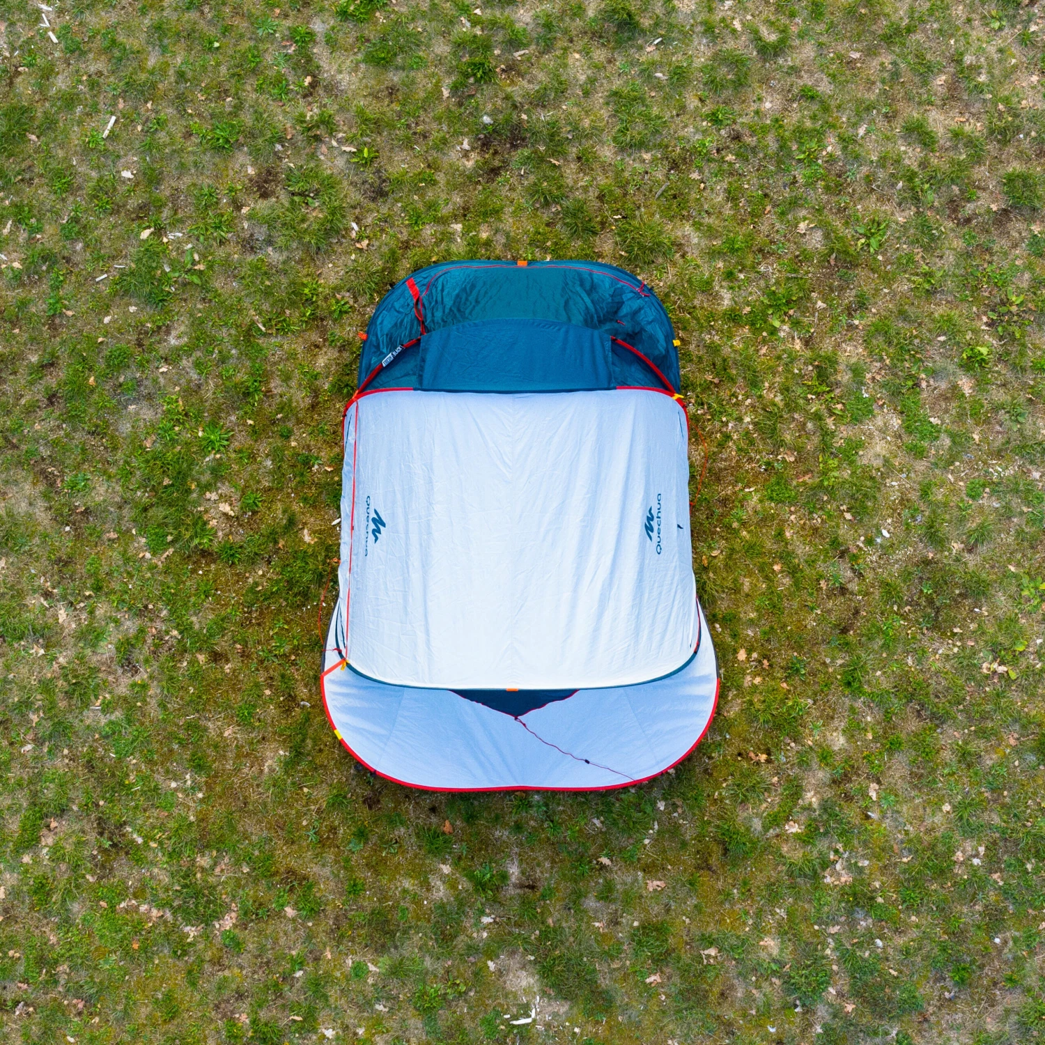 Our designers have spent time developing this two-person tent that you can pitch in just a few minutes. It gives you guaranteed mobility.Give yourself comfort, spacious rooms and good height. Leave your bags in the entrance without worrying about damp, thanks to the porch. And the guided folding system gives convenience as you leave.