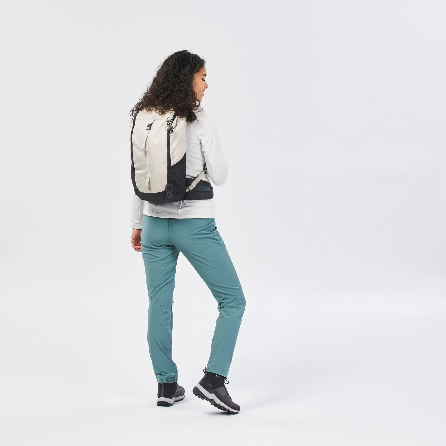 This MH100 hiking backpack has been designed for your occasional outings. Comfortable to carry with a padded belt and ventilated back.We have reduced the impact of this hiking bag by 18% through our actions. It has a smartphone pocket, an inside pocket and a water bladder.