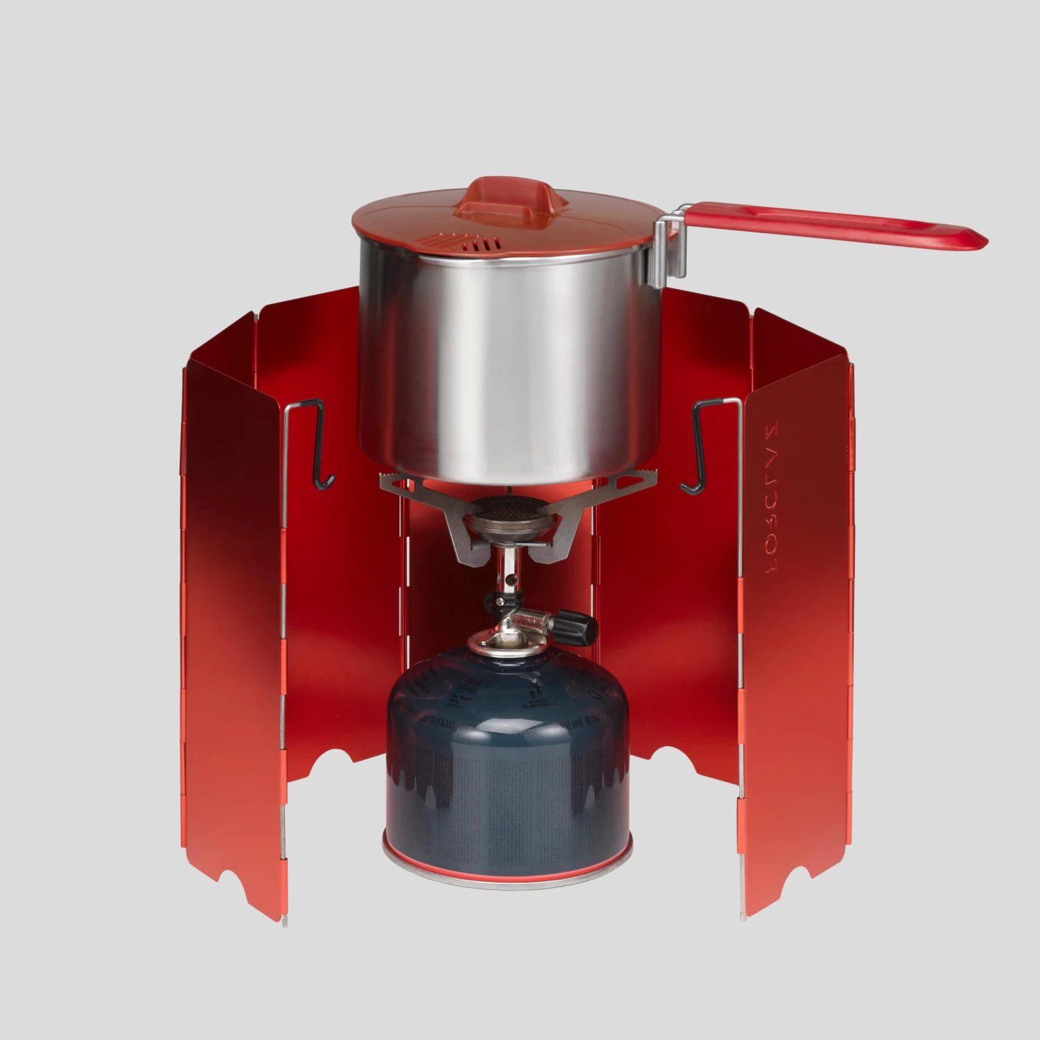 Unfold the windscreen and position the two curved feet on the gas cartridge of your stove.